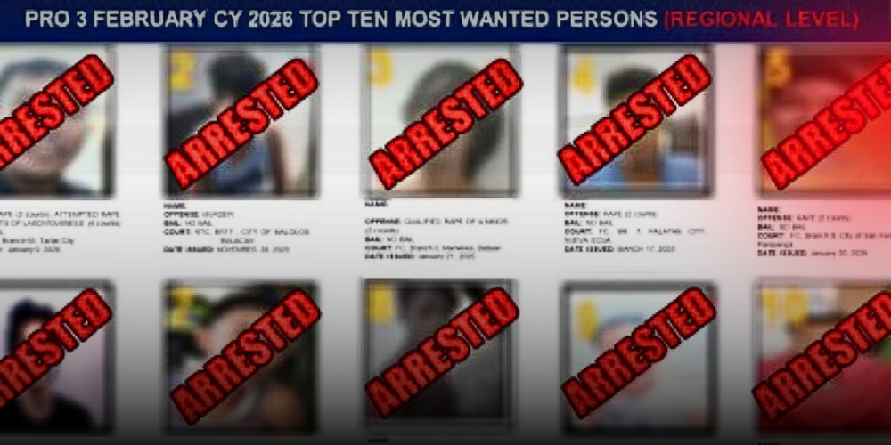 The Police Regional Office 3 arrested all individuals listed in its February top 10 regional most wanted persons list in a coordinated three-day operation conducted from February 1 to 3 across Central Luzon.